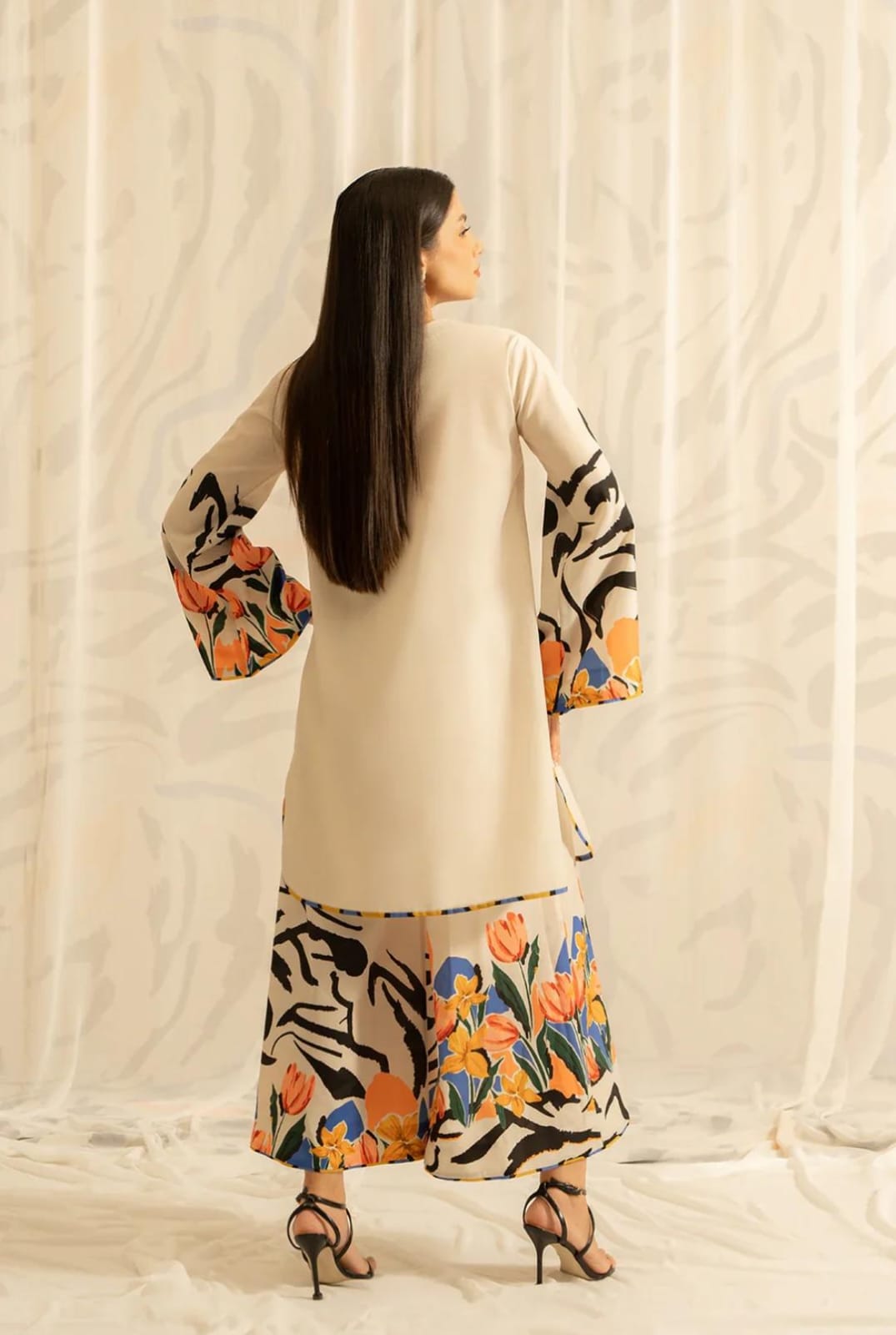 A perfect balance of neutral base tones & vibrant floral designs, making it versatile for different occasions.