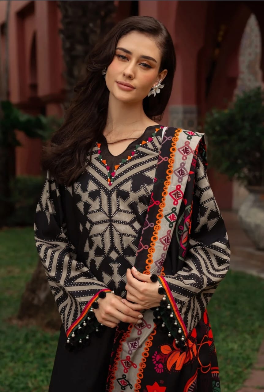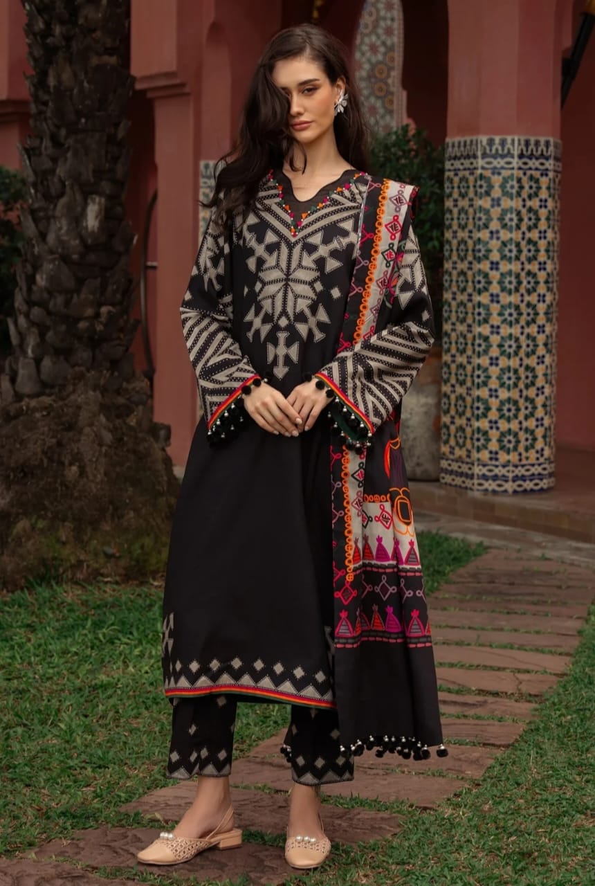 Redefine your winter wardrobe with this ready-to-wear 3-piece suit, designed in rich black tones with tribal-inspired prints and vibrant detailing. Perfectly stitched for effortless elegance, this outfit blends comfort, tradition, and modern sophistication.